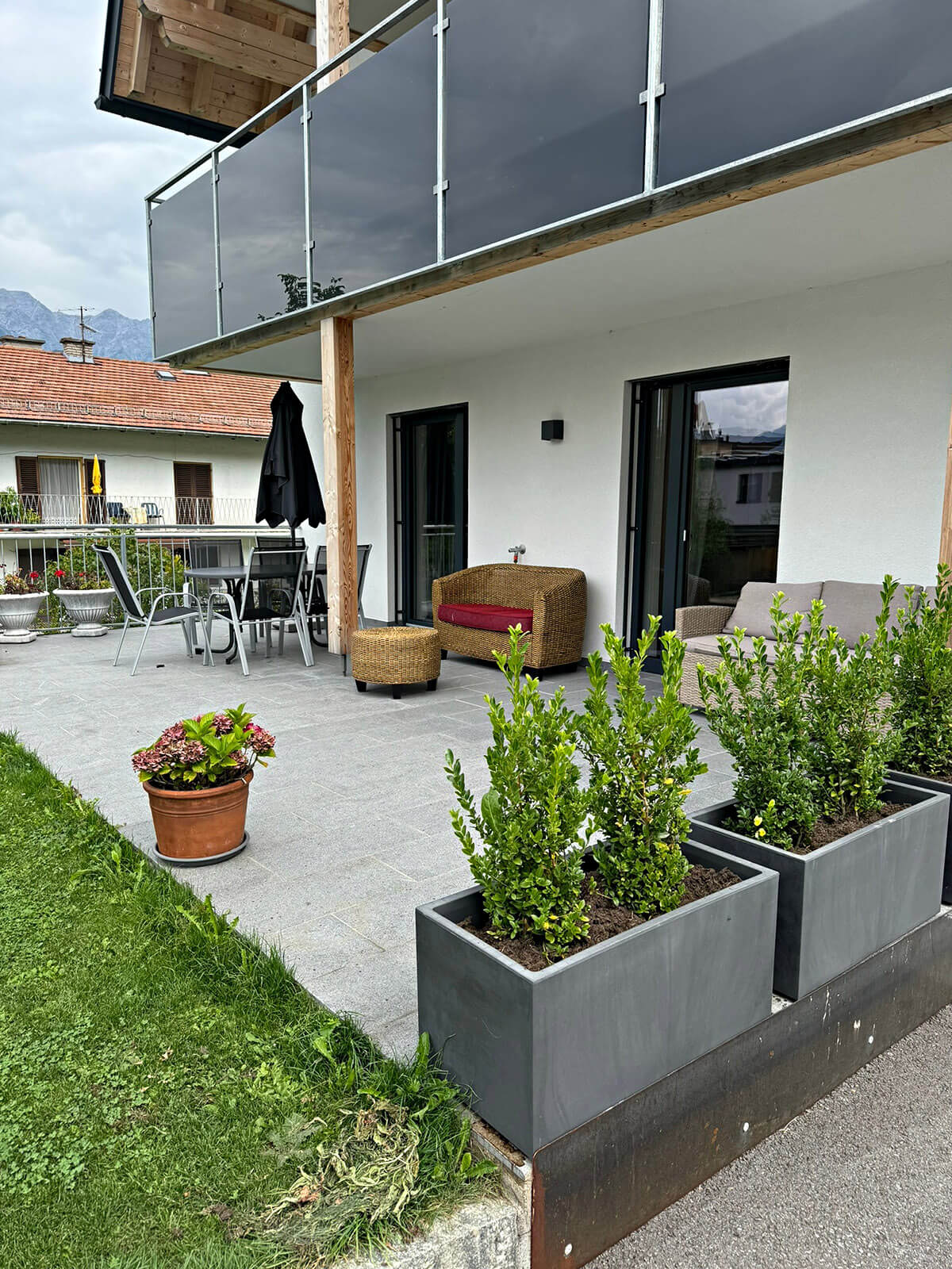 Aller Anfang ist schwer! Der Weg hierher war nicht immer einfach für uns. Die Pandemie seit 2020 hat uns zu Bauverzögerungen und Änderungen gebracht. Das Haus am Baderbühelweg 3 in Axams haben wir im Jahr 2022 fertig renoviert. Sauberkeit ist unsere oberste Priorität- die glatten Oberflächen und die helle, praktische Einrichtung machen es uns leicht die Wohnungen sauber zu halten.